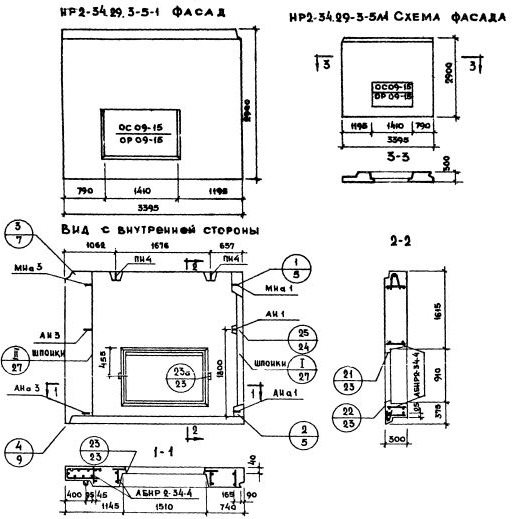 НР2-34.29.3-5л-1   Наружная стеновая панель рядовая по Серии 1.132-1.